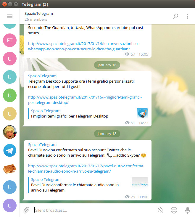 È appena passata una settimana da quando Telegram Desktop è stato aggiornato alla versione 1.0, introducendo i temi grafici personalizzati, e proprio in queste ore è stato presentato un nuovo aggiornamento che corregge alcuni bug e introduce una nuova modalità compatta.
